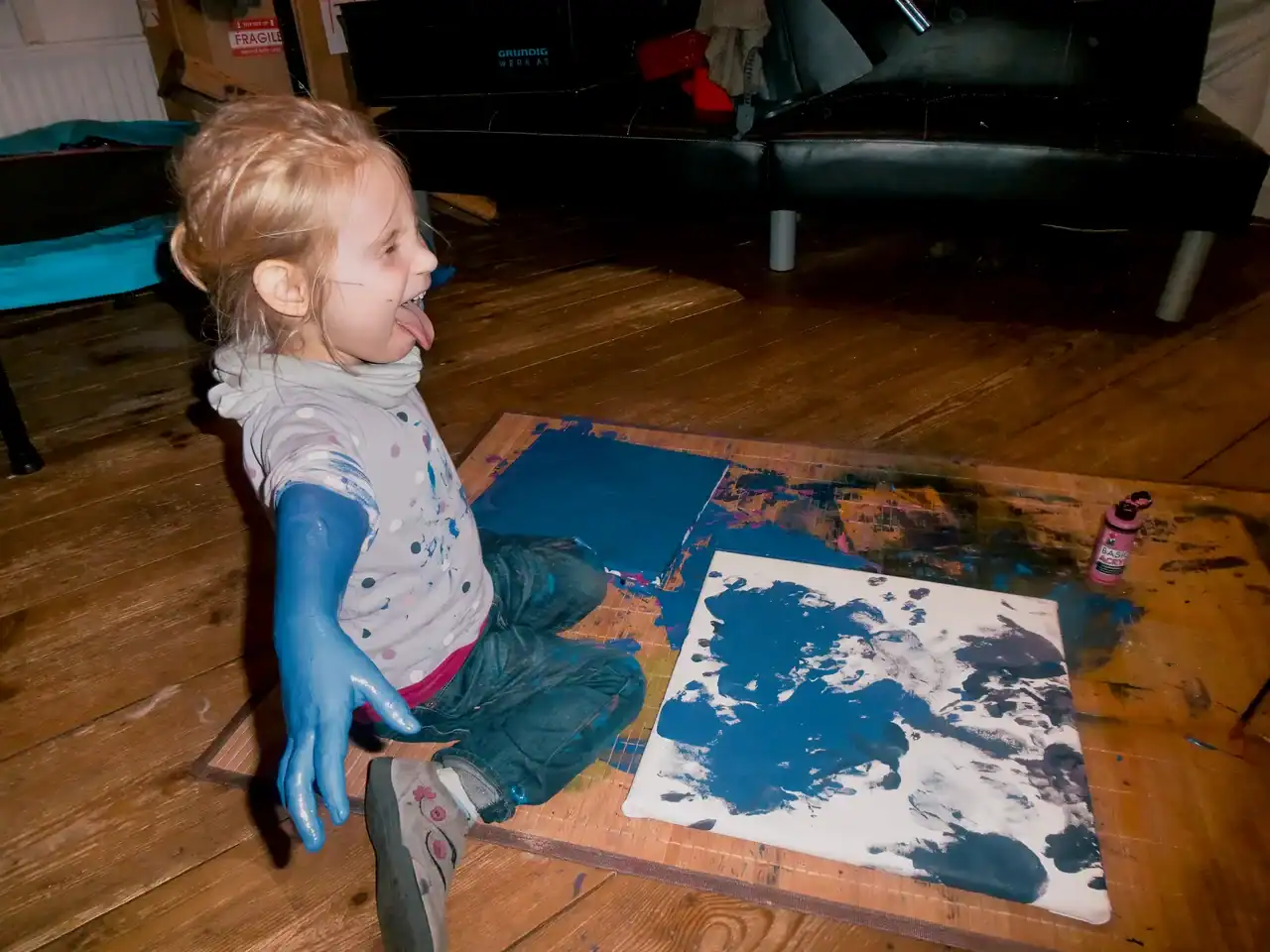 Meine erste Ausstellung hatte ich 2016 in Berlin in der Klax Galerie. 2017 habe ich bei der Eröffnung der Galerie meiner Mama Bilder gemalt, die dort gezeigt wurden.