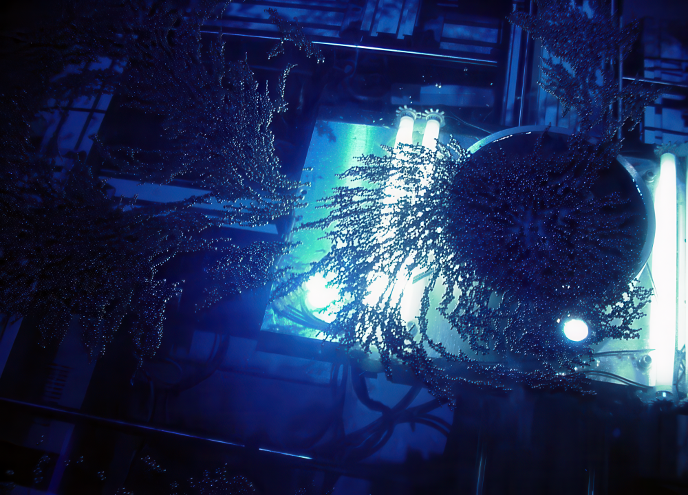 Energy-potentials are cannibalized off the Internet and from the local movement of spectators in the physical space of R111. These energies are then transformed into various states of matter – both physical and virtual – and presented by the installation with the help of several modules. New media actual tendencies are virtualizing reality. R111 on the opposite materializes virtuality and its appetite for electrical power: choreographing particles of matter via energy as though they were pixels.