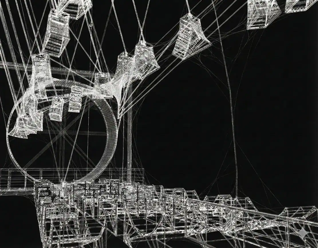 1ST1 shatters this illusion, revealing the heavy, lithic core of the virtual. The arrangement is precarious: a glitch in this petrified matrix is not merely a flicker on a screen, but a stoning, a crushing fall. Such collapse does not delete data: it deletes life.