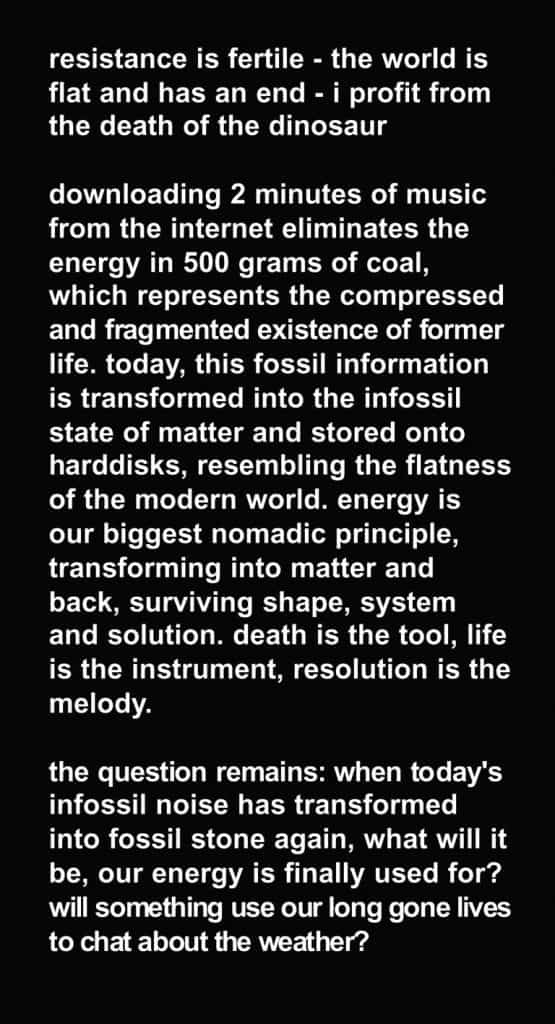 In an extraordinary compilation, the ZKM presents the main works from its globally unique media art collection. See our infossil work (2003) there from February 23, 2019 on.